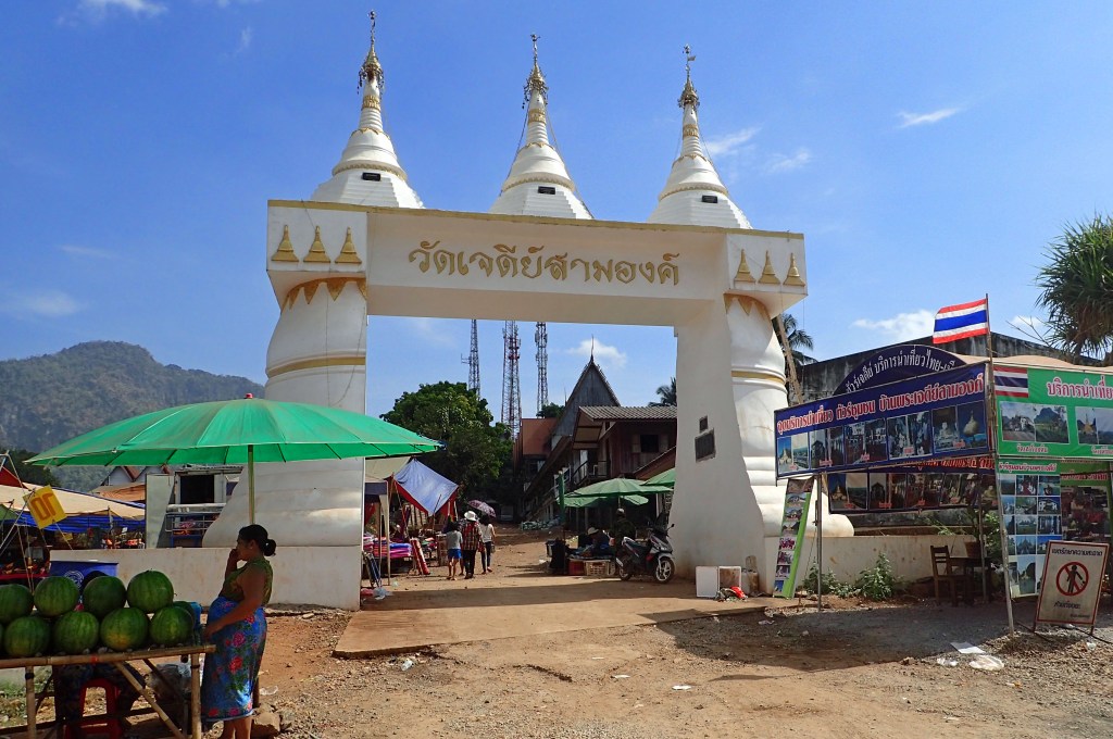 Three Pagodas Pass isn’t really a town, just a market and checkpoint. Foreign tourists aren’t welcome to cross here, just to peer across into Myanmar.