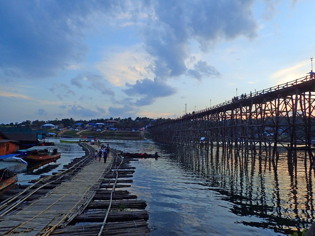 This long bridge connects Sangkhlaburi with the 95.5% Mon refugee village on the other side of the reservoir/river.