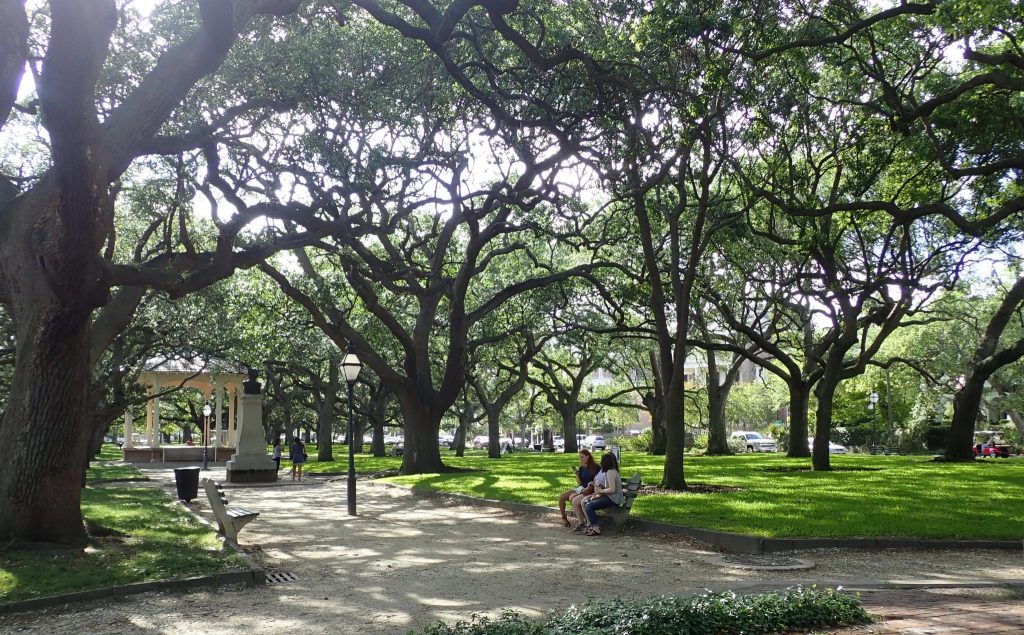 This waterfront park in Charleston was where nationalistic testosterone crazed idiots started the UnCivil war in 1861, 157 years ago. There were no trees here at that time because it was a battlefield. They have subsequently grown back. As you can see these are beautiful trees, but nothing like the old mossy oak spared by George Washington. If the tree in question was only as large as these trees I doubt that old George would even have had an opinion. I believe the tree must have been much larger and more beautiful than these puny 157 year old saplings to have received a presidential pardon.