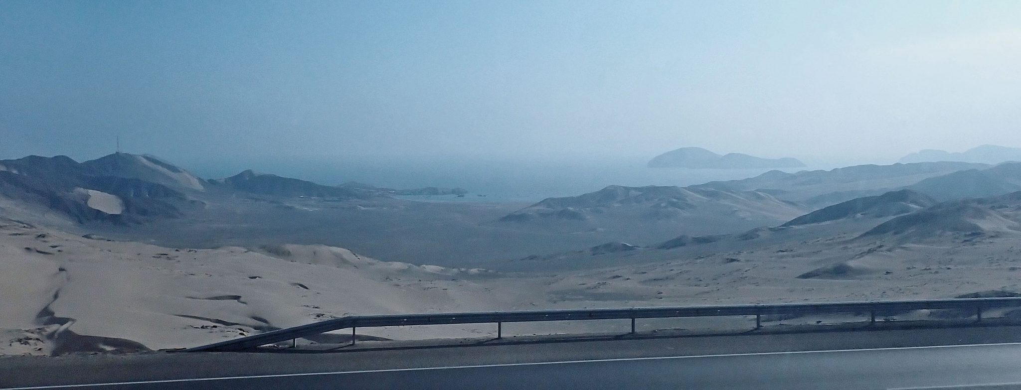 Panoramic windows on the upper deck of the bus provided expansive views of the gloaming garúa, along with occasional glimpses of brown rocks and the slate gray sea. Therefore, most passengers just sleep. At no point could I see the mountains through the fog.