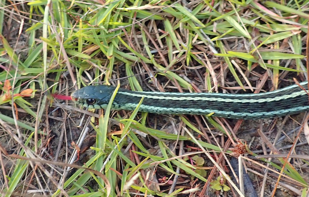 The way was wet, and along the way I was pleased to find a blue garter snake (Thamnophis sirtalis similis), the first I had seen in years.