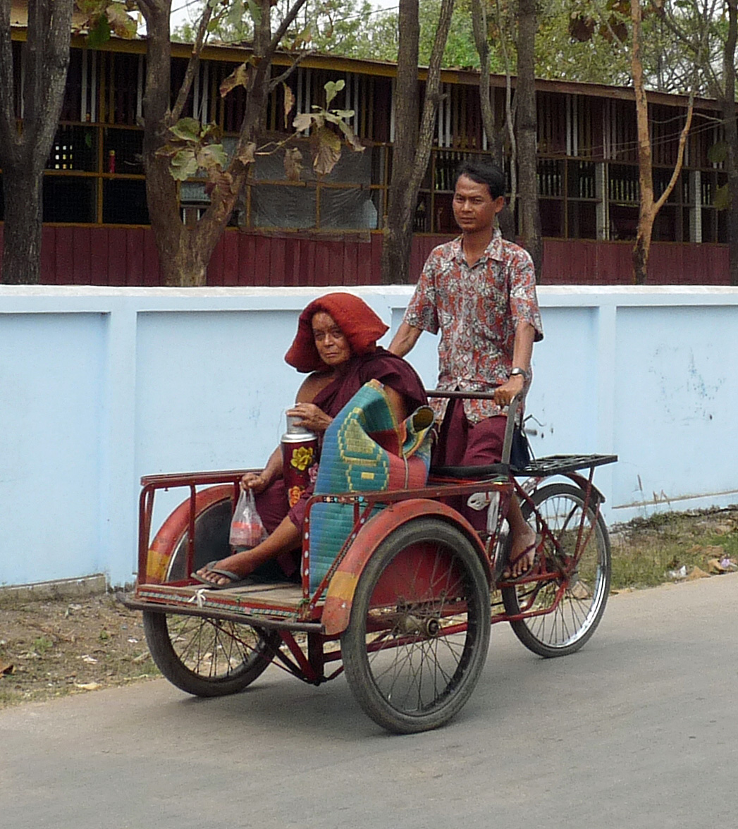 I wanted to walk, but Jaw Too insisted that an honored guest deserved nothing but the best so we selected a rickshaw peddled by an old man. When I protested he asked, “Do you want the old man to starve?”