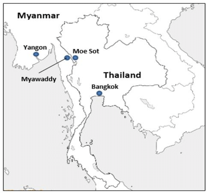 Myawaddy is one of the few places where a traveler can legally enter Myanmar by land. Yuppie tourists are welcome to fly into the heavily policed colonial capital of Yangon (Rangoon), take a tour, and stay at a fancy hotel, but independent travel is strongly discouraged. That is because dictators never like it when penniless Hippies, many of whom have a political agenda, wander around loose in the countryside talking to whomever they please. What if they were to meet a dissident and tell the world about it?