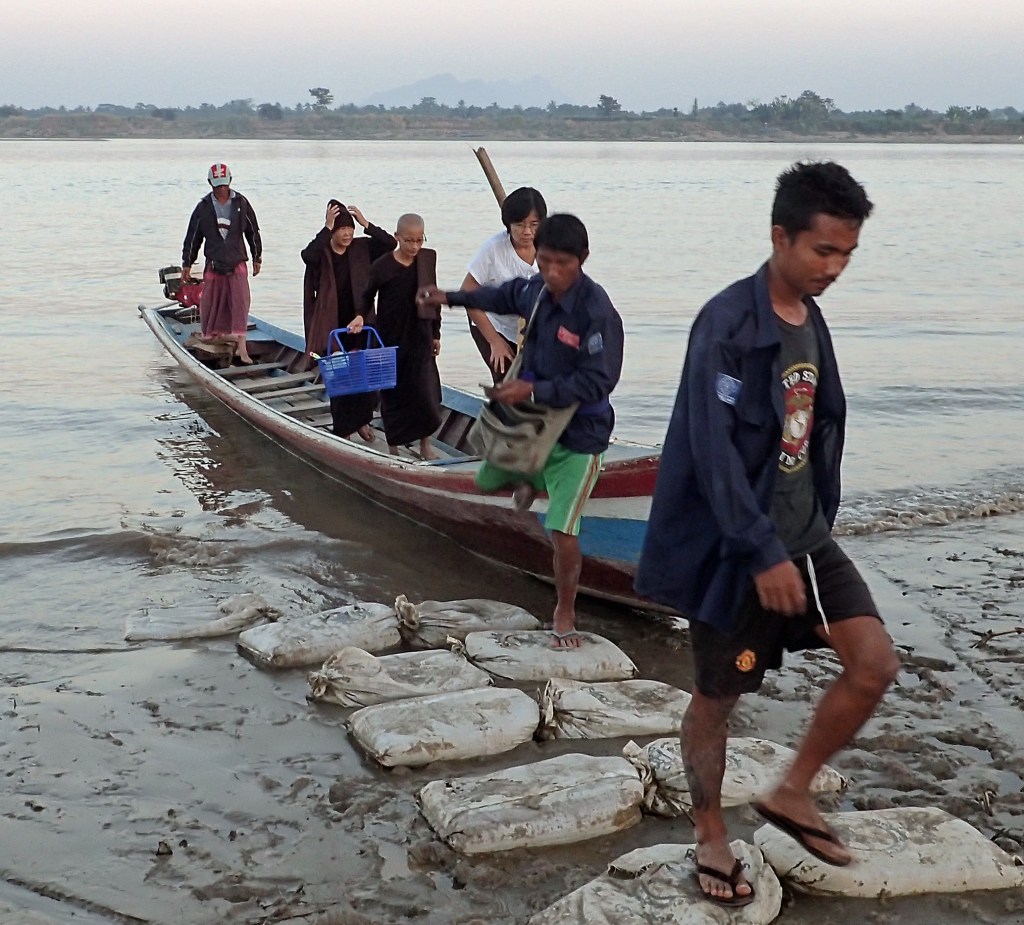 At a nearby landing ferry boats waited for passengers who wanted to cross the river, or to visit Hpar-Pu mountain, the nipple topped karst peak so prominently visible across the river.