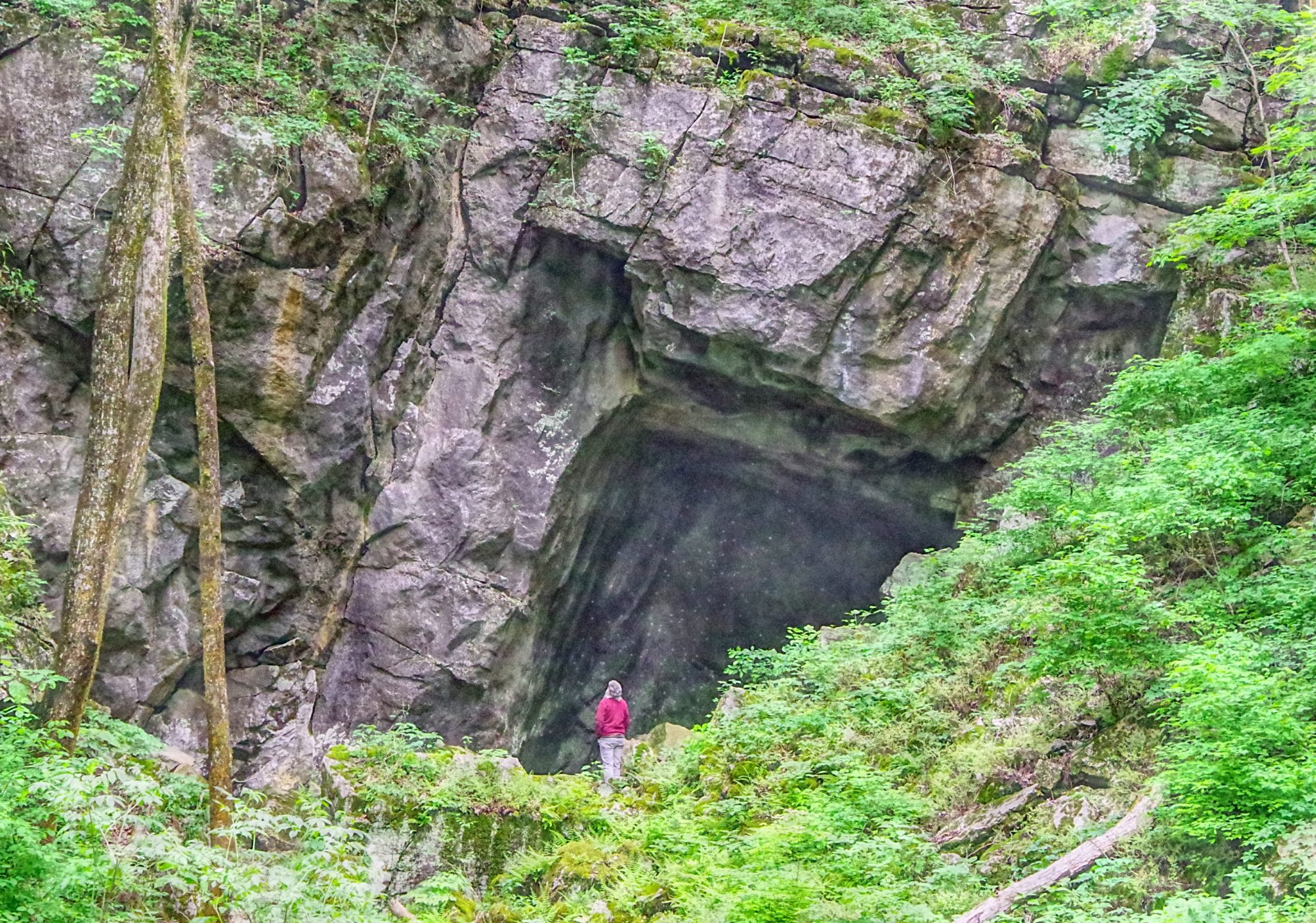 The Sitton’s gulch path continues all the way down the mountain to Trenton, GA, a wonderful walk. At the mouth of the canyon is the enormous entrance to Sitton’s cave. By some miracle the State of Georgia has allowed the cave to remain open to whosoever is foolish enough to enter.