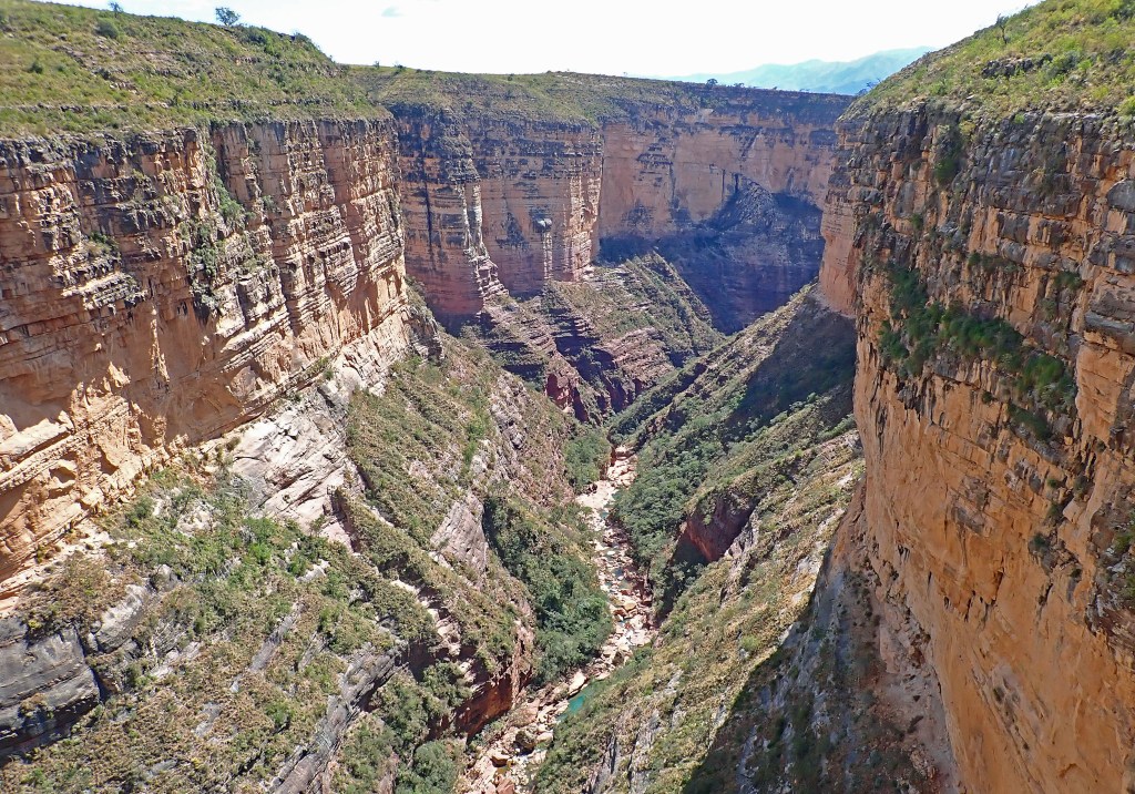 We followed the enormous dinosaur tracks until they ended at the brink of an abyss where the little Torotoro river plunged into an ever deepening canyon.