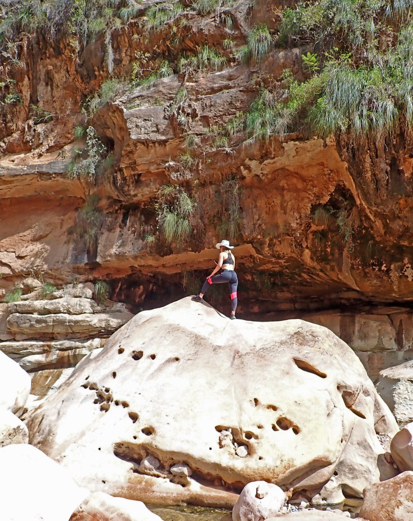 At a mere 8500 feet, and protected from the wind, the canyon floor was almost tropical, but I wasn’t about to go for a swim. From this point on it was all rock hopping, and the boulders were big!