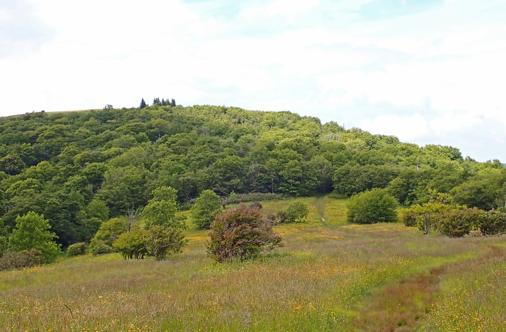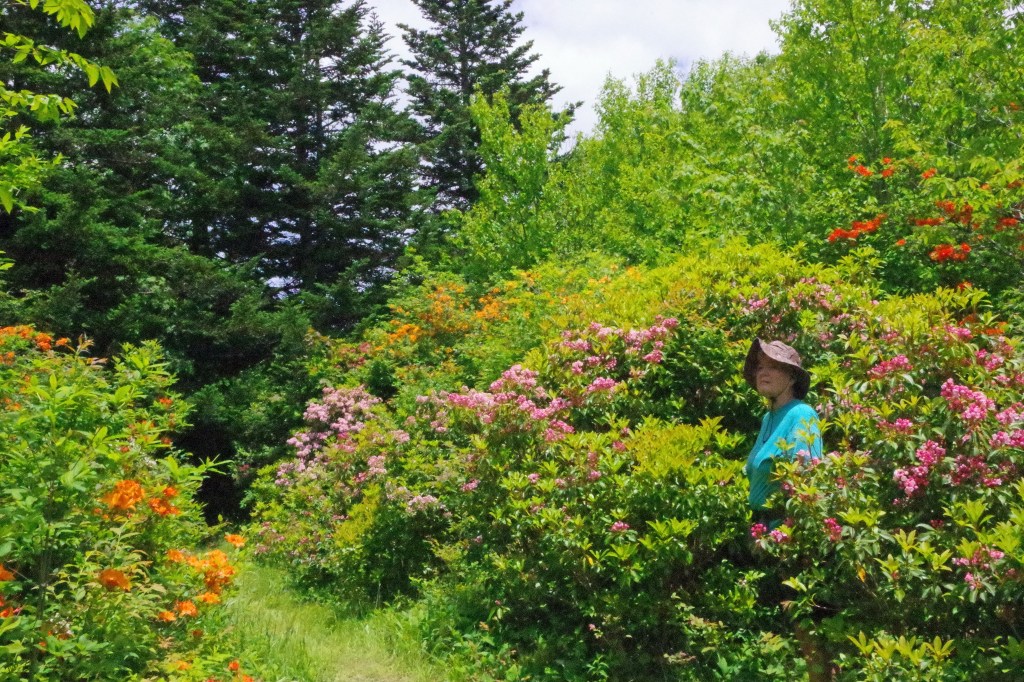 After passing through the heavenly Rhododendron “hell” we emerged on to the open grassy bald. There were beautiful views and we were pleased to see Flame Azaleas in bloom.