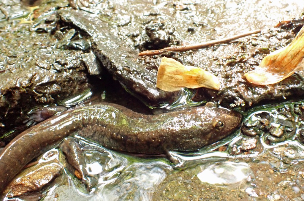 One of the main reasons Ann often walks ahead of me is so that I can pause to take photos, and to flip rocks looking for salamanders. In general I was disappointed, but when we went to Jeffrey’s Hell I discovered the mother lode of snot lizards.