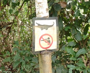 There was no way I could eat another fish, so we walked around until we found the entrance to the protected area. There was a large sign lauding all the various governmental agencies that had pretended to participate but had failed to provide any funding (proof of socialism at work), a welcome to whatever non existent tourists might wish to walk the eco-sendero (nature trail), a sign prohibiting motor vehicles, and another prohibiting the hunting of caimans.