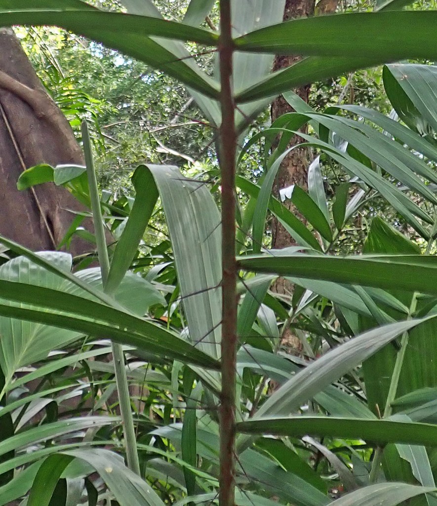 Compared to other jungles I had seen relatively few spine palms in Bolivia. There are many species of spine palms in South America. These range from jungle giants like Acrocomia to the demonic Desmoncus which is a bullwhip like vine densely covered with spines. The slightest touch sends Desmoncus into a fury as it lashes toward your face in an attempt to bury its spines into your eyeballs.