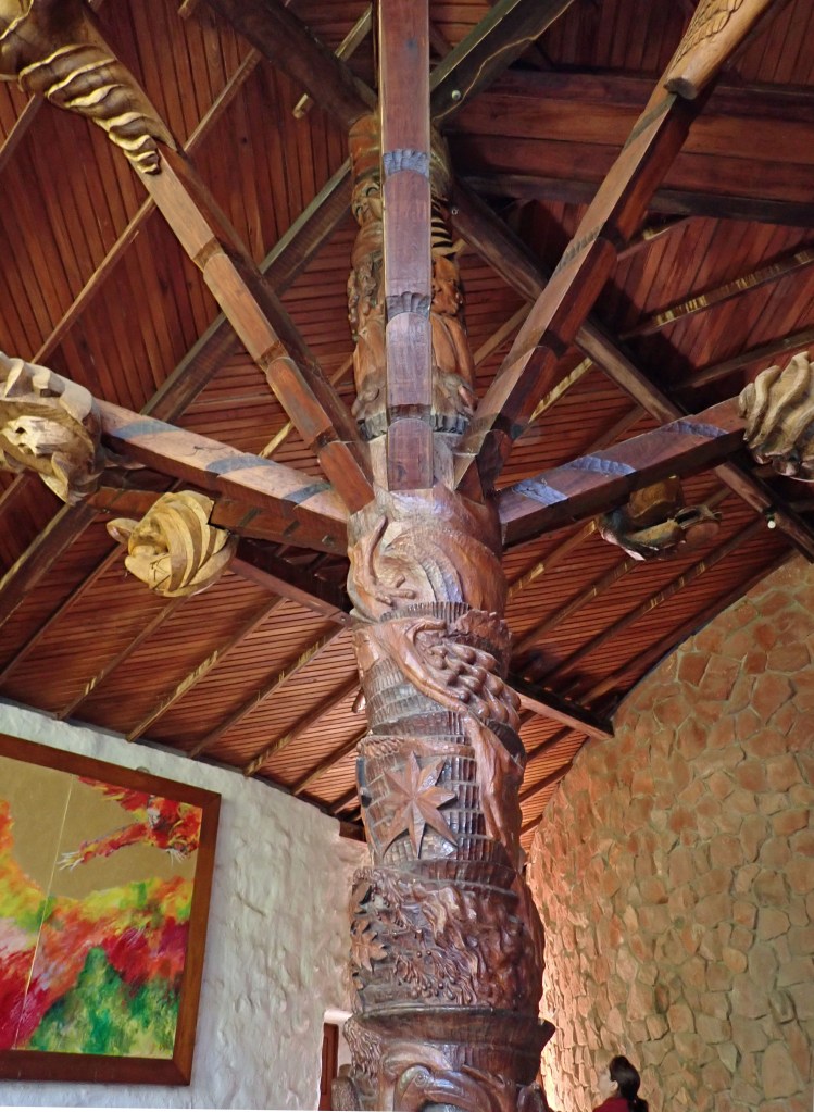 Notice that traditional Andean pan pipes, violins, and guitars are represented in the columns. The Jesuits sought to “sooth the savage beasts” with music. The local Guaraní have continued that tradition until this very day.