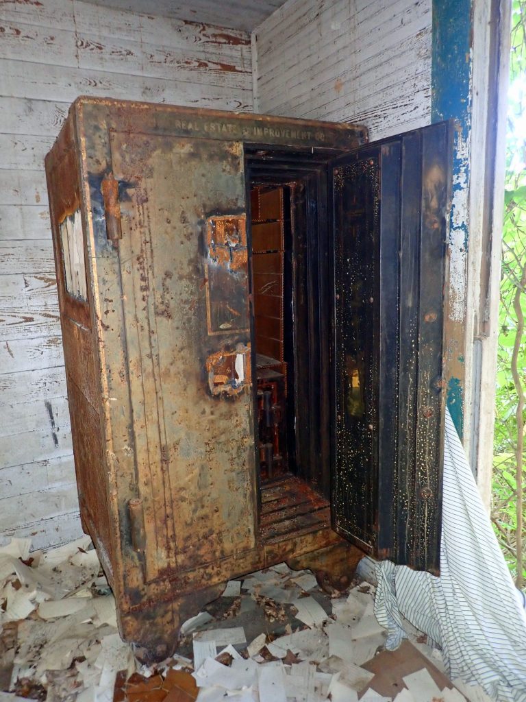 I was still puzzled as to the purpose of the ruins, what had been made or done here? That was when I found the manager’s house lost in the woods. Inside I discovered a massive steel safe worthy of a frontier bank.