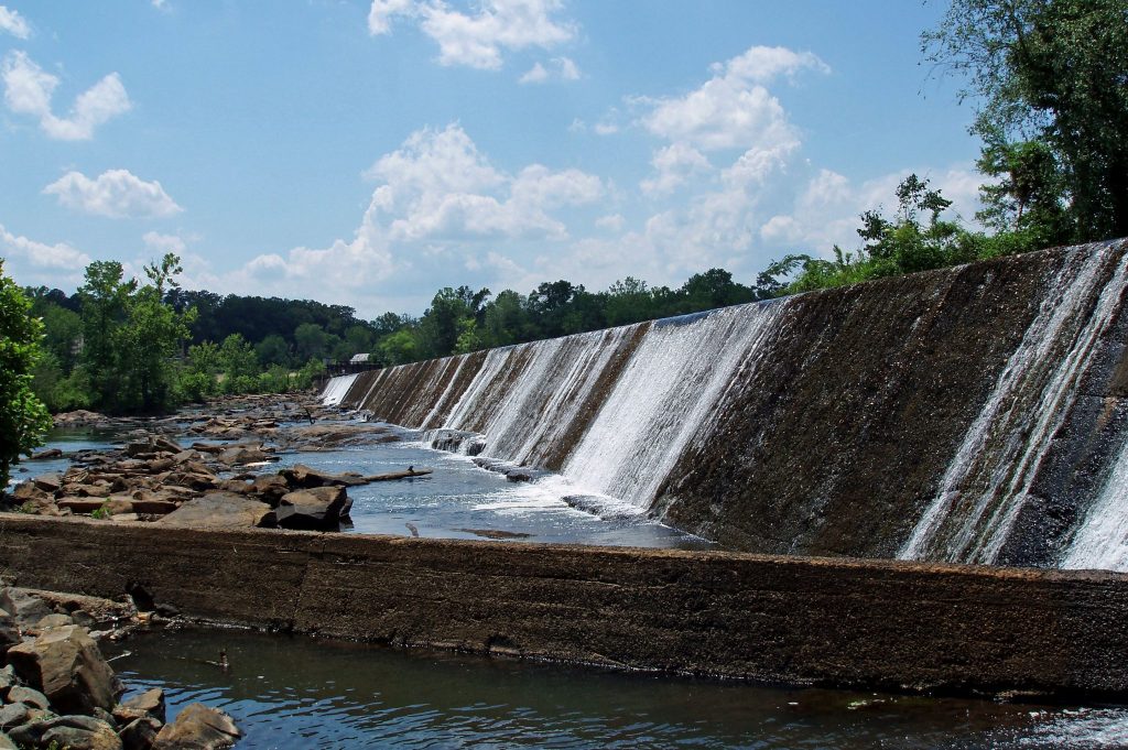 Most major cities in the eastern United States are located somewhere along the fall line because it was the first place a settler could build a proper water powered mill. So, in theory, Juliette, or perhaps Macon, should be the capital of Georgia, but Atlanta got the railroad so Juliette faded into obscurity.